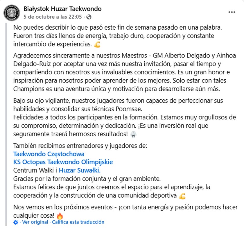 HUZAR POOMSAE CAMP Taekwondo Olimpijskie (Bialystok) 3, 4 y 5 octubre 2025 » Ver Galería de Fotos P.D. Photorelacje fue hecho por Adrian Austin Matulewicz