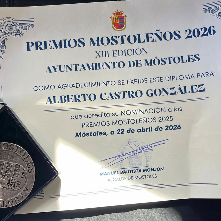 Nuestros alumnos Alberto Castro y Diego Bernal, ambos campeones de España, han sido nominados por el Ayuntamiento de Móstoles a los premios a mejores mostoleños, y esta tarde han recogido su reconocimiento en el Ayuntamiento.