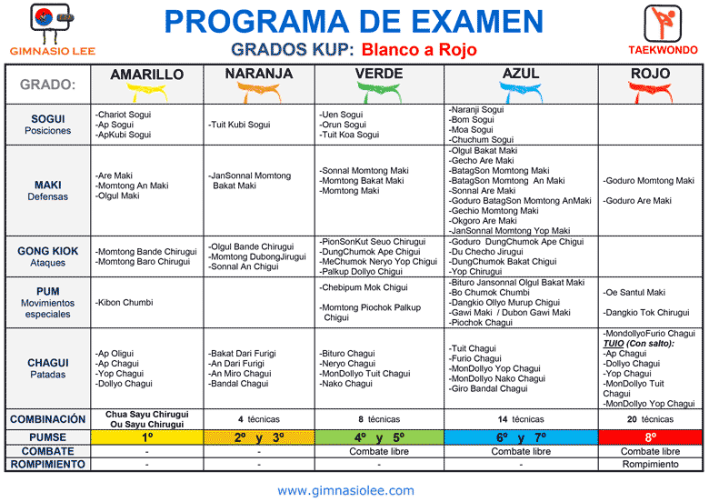 Cinturón negro Pum o Dan, siempre acorde al grado del aspirante.Requisitos