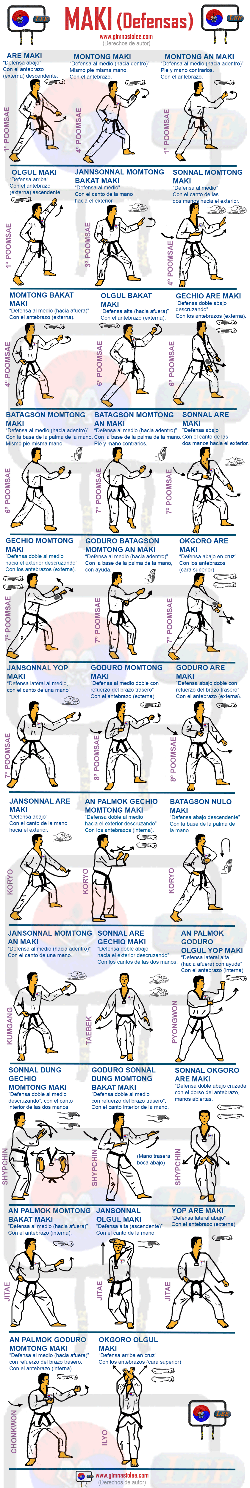 - "Sonnal": canto de la mano. - "Momtong": tronco, zona media. - "Maki": defensa, bloqueo.