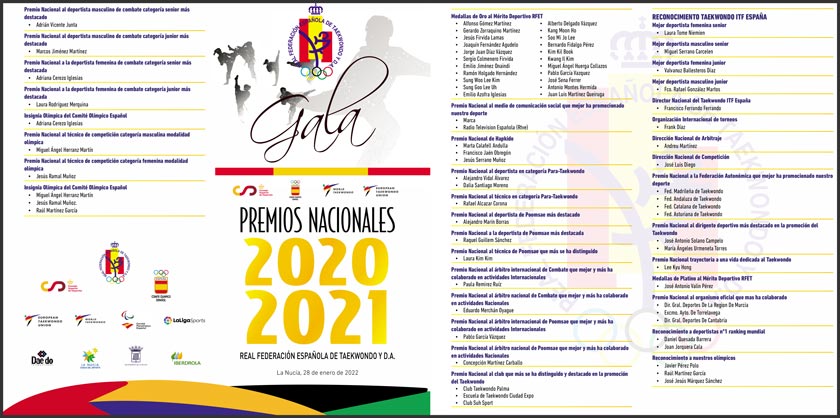 entregaron los premios de la "Gala de los Premios Nacionales de la Real Federación de Taekwondo" dónde se condecoraron a deportistas, técnicos, árbitros, clubes, Federaciones Autonómicas, Parataekwondo, Hapkido y Taekwondo ITF.