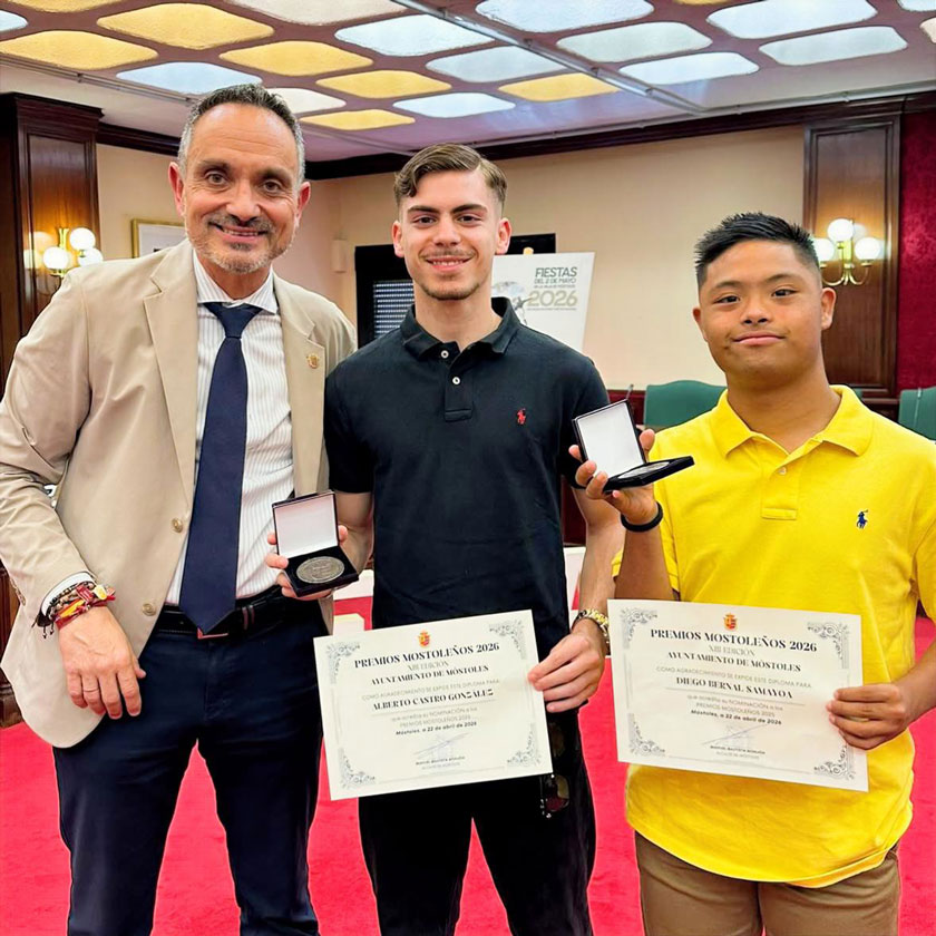 Nuestros alumnos Alberto Castro y Diego Bernal, ambos campeones de España, han sido nominados por el Ayuntamiento de Móstoles a los premios a mejores mostoleños, y esta tarde han recogido su reconocimiento en el Ayuntamiento.