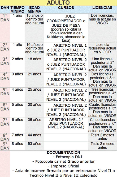 - Grados inferiores a cinturón negro 1º dan, es competencia exclusiva de la RFET, y por delegación: